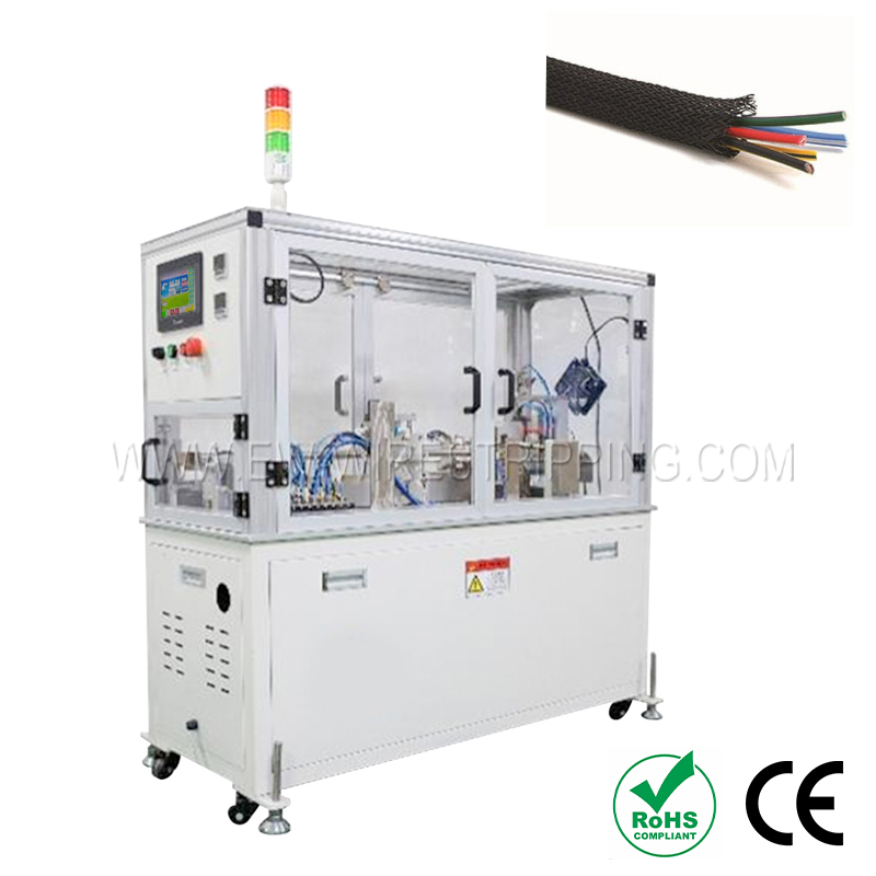 Features a high-precision automatic cutting system with a micro-adjustable photoelectric control, ensuring accurate and clean cuts for various types of braided sleeving to a set length.
