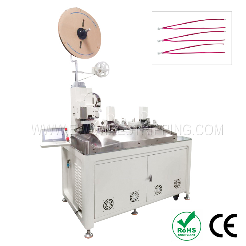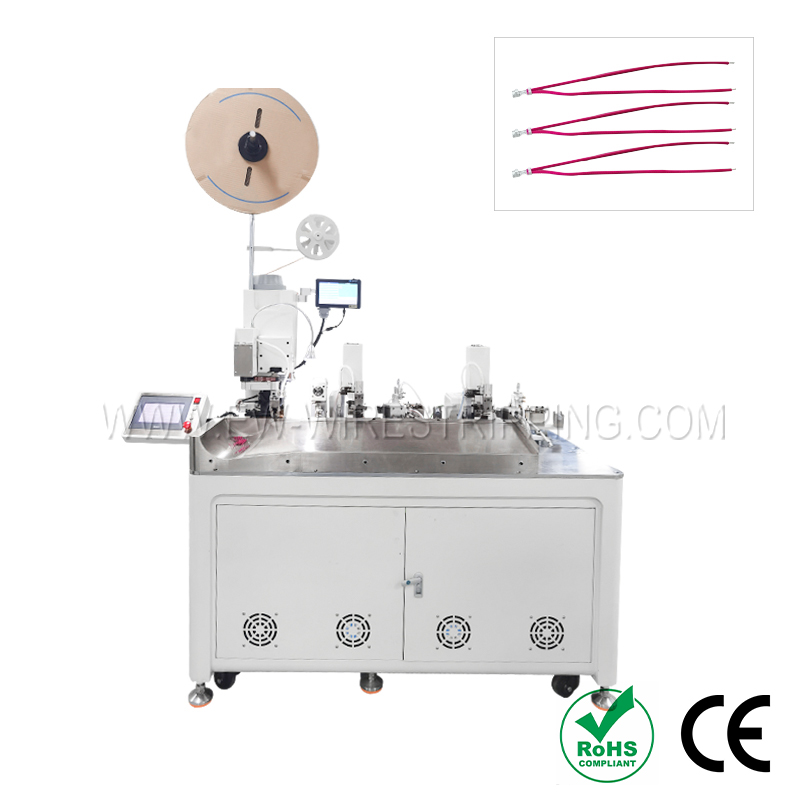 Wire cutting , single-end stripping, double-end stripping , crimping terminals , one-end crimping, half- stripping, twisting and tinning ; stripping length / crimping position / knife depth can be adjusted |